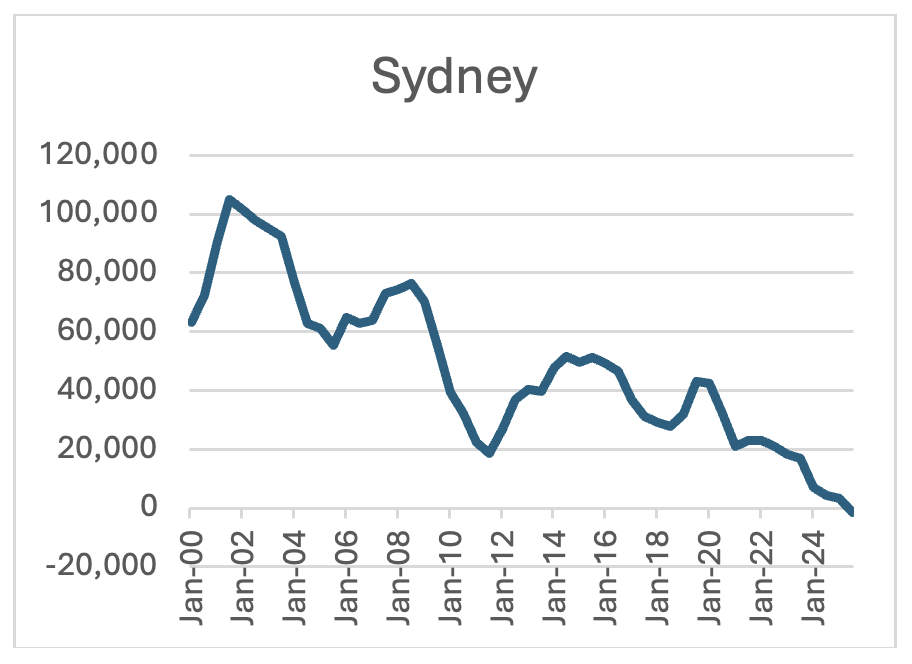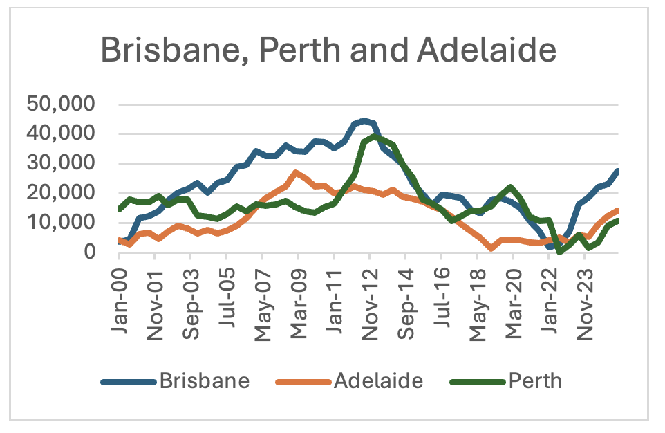Brisbane, Perth and Adelaide, influenced by resources, have not yet fully started the de-densification process.